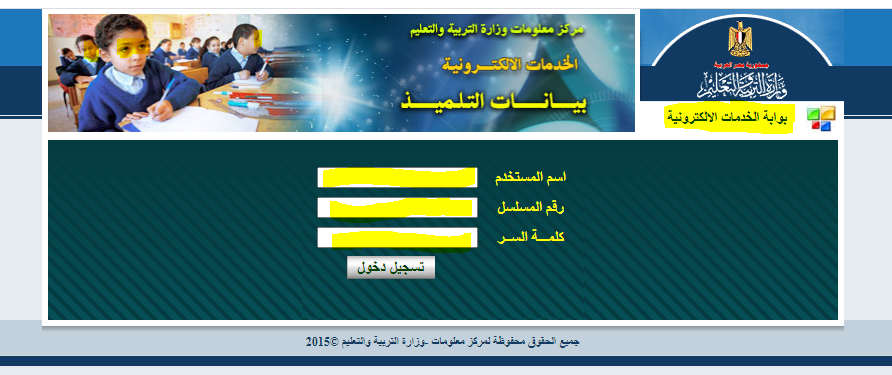 وزارة التربية والتعليم بوابة الخدمات الالكترونية بيانات التلميذ