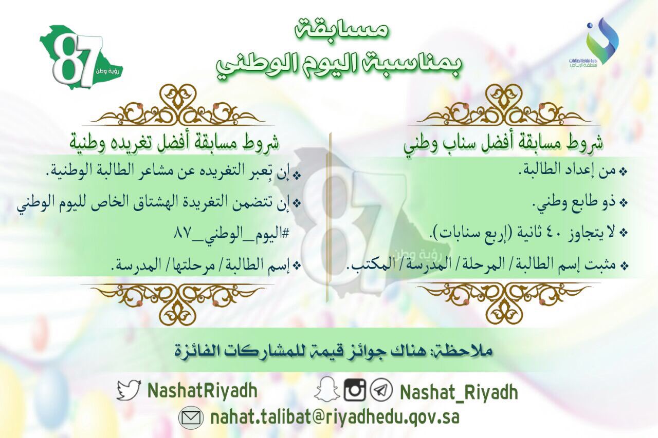 حساب ملغي On Twitter اليوم الوطني ٨٧ شاركونا فرحة الأحتفال باليوم الوطني شروط مسابقة افضل تغريدة وطنية افضل مقطع وطني على سناب شات ادارة النشاط Https T Co Gy3xtrx0dd