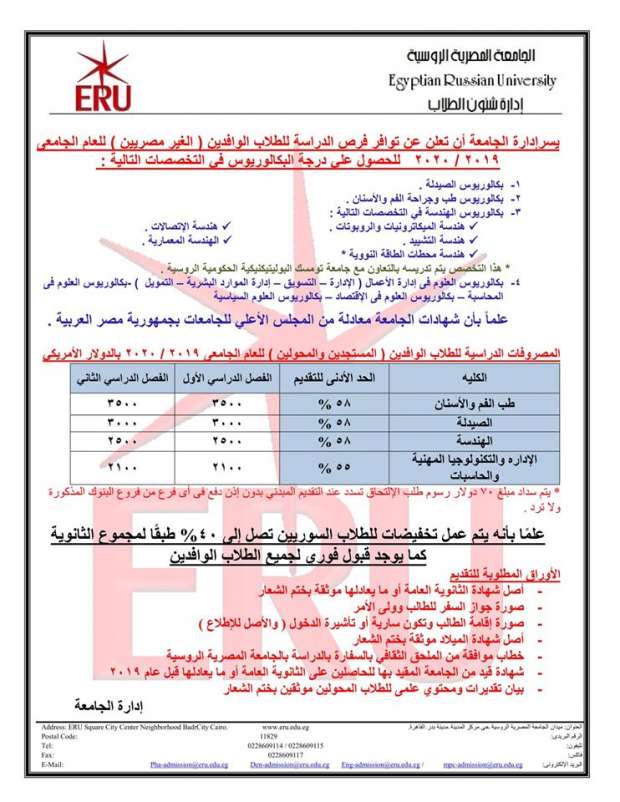 المصروفات الدراسية للطلاب الوافدين بكليات جامعة مصر بوابة فيتو