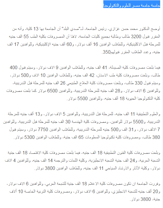 ننشر مصروفات جامعة مصر للعلوم والتكنولوجيا 2016 2017