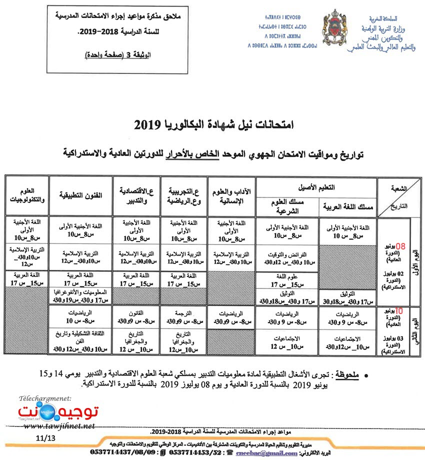 مواد الامتحان الوطني والجهوي باك حر 2019 المغرب Bac Libre Maroc